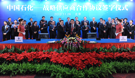 Under the guideline of "conmlementation of advantages,reciprocity and mutual benefit,cooperation and win-win,joint development",the"Strategic Cooperation Agerrment Between the Material Equipment Department of China Petroleum & Chemical Corporation and Hilong Group of Companies Ltd"signed between both sides has a cooperation period of three years in its first round of cooperation.