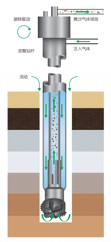 ·在雙壁鉆桿基礎(chǔ)上也發(fā)展了新的鉆井技術(shù),以RDM(Reel Well Drilling Method)鉆井技術(shù)和RCCD(Reverse Circulation Centre Discharge)為典型代表。